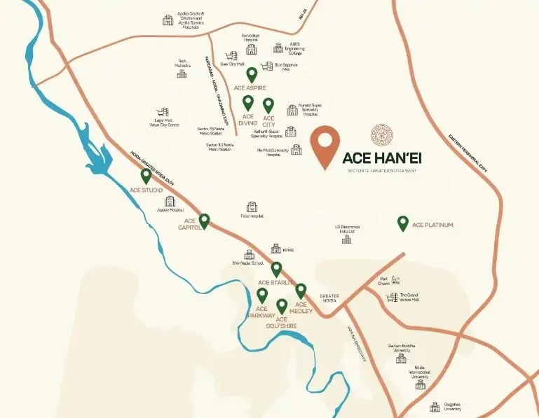 Experience a new benchmark of refined living at Ace Han’ei, an ultra-luxury residential development located in the prime location of Greater Noida West. Designed to blend neo-classical architecture with modern elegance, this iconic project offers a lifestyle where comfort, sophistication, and serenity come together seamlessly.